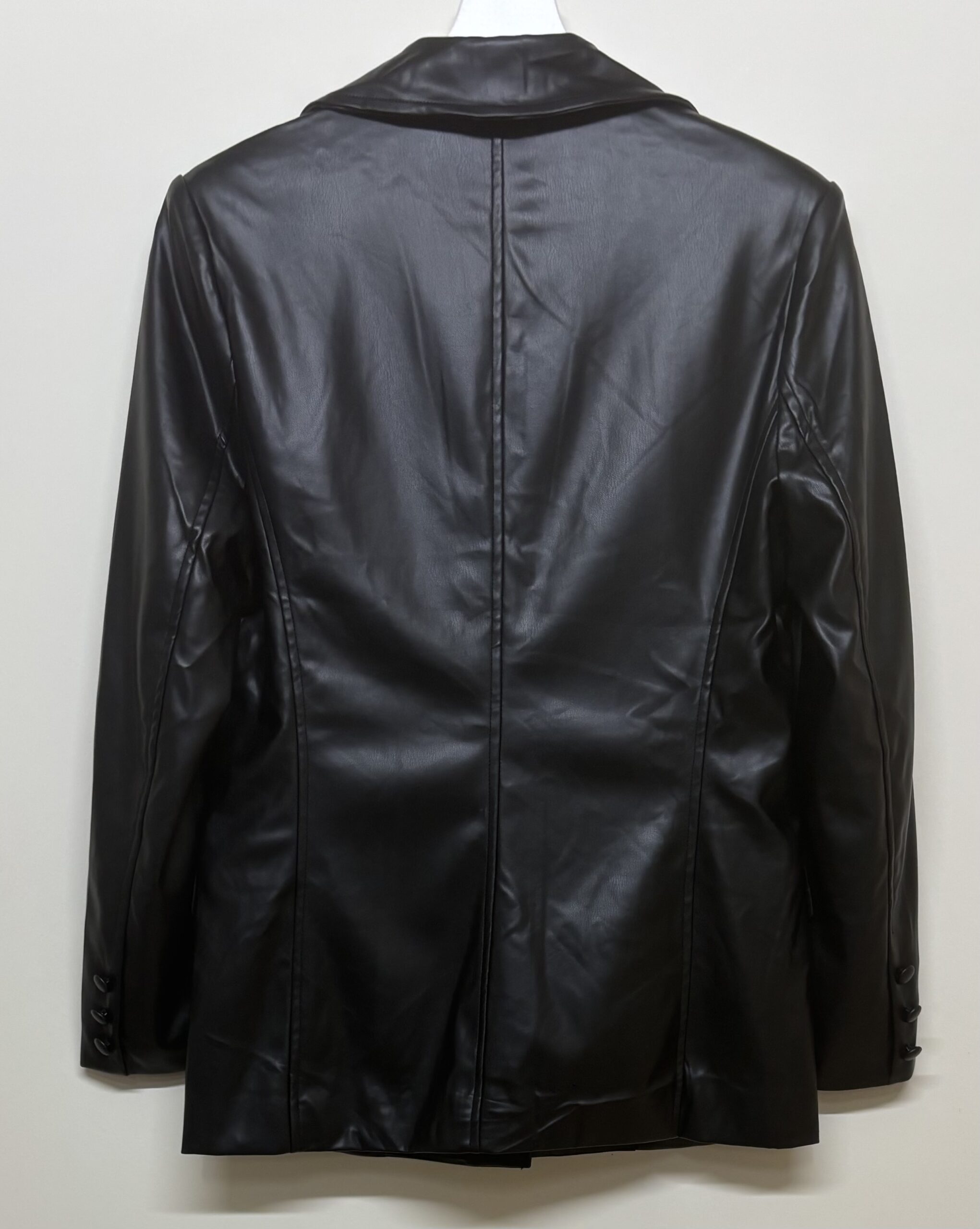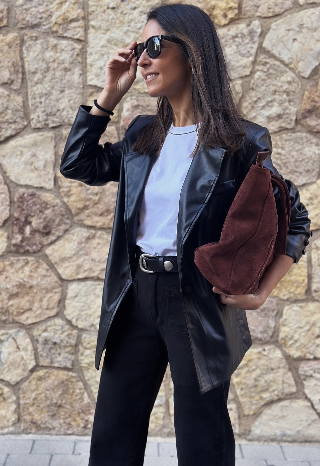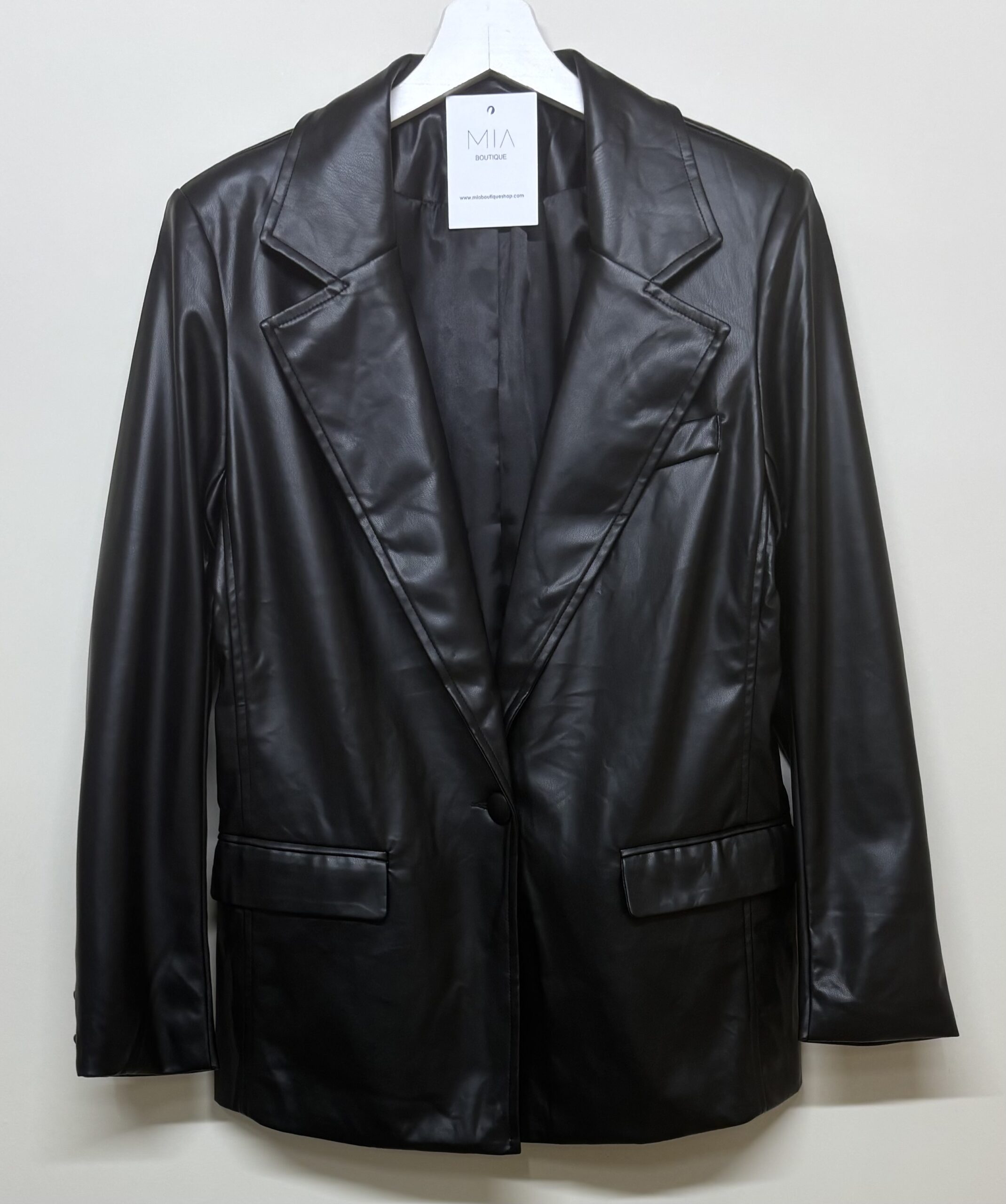 Americana entallada de ecopiel en color negro. Una prenda atemporal que resulta ser muy tendencia esta temporada. Su corte entallado y tejido elástico la hace de lo más cómoda y te permite lucirla en looks más casual como más arreglados.