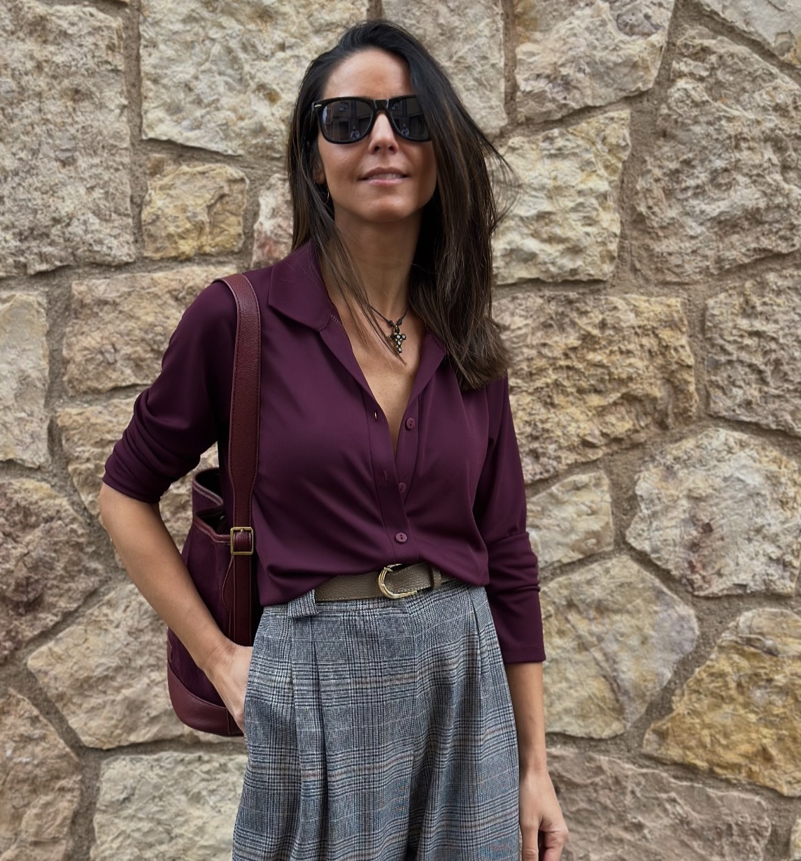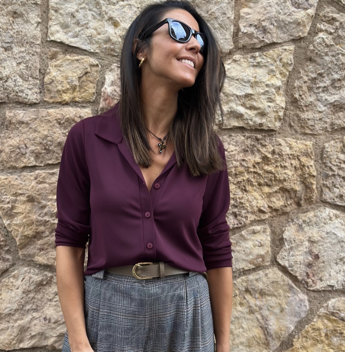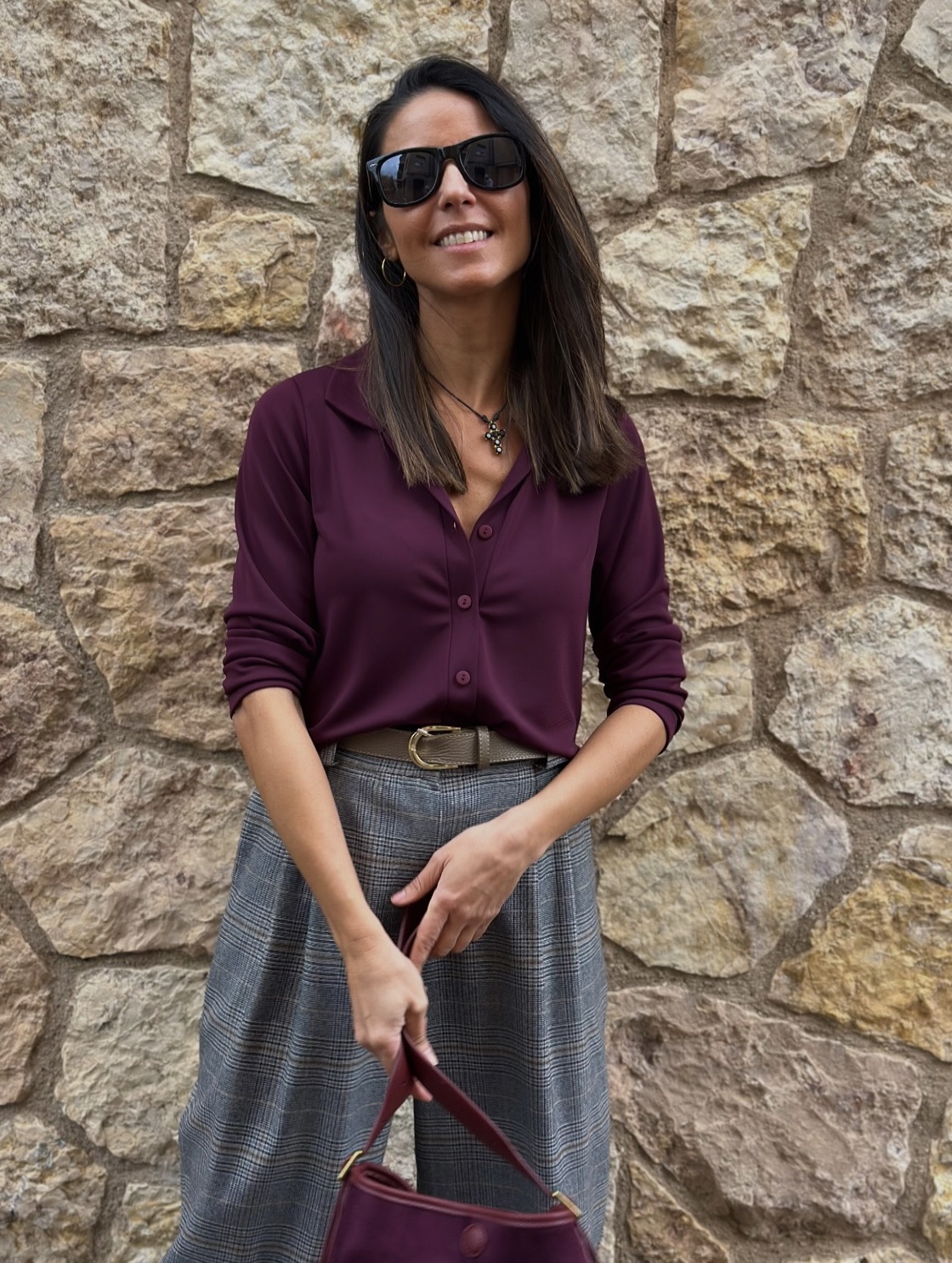 Camisa de manga larga sin puños, cuello camisero y cierre frontal con botones. Confeccionada con tejido de punto elástico muy cómodo. Una básica perfecta para crear looks para cualquier ocasión.