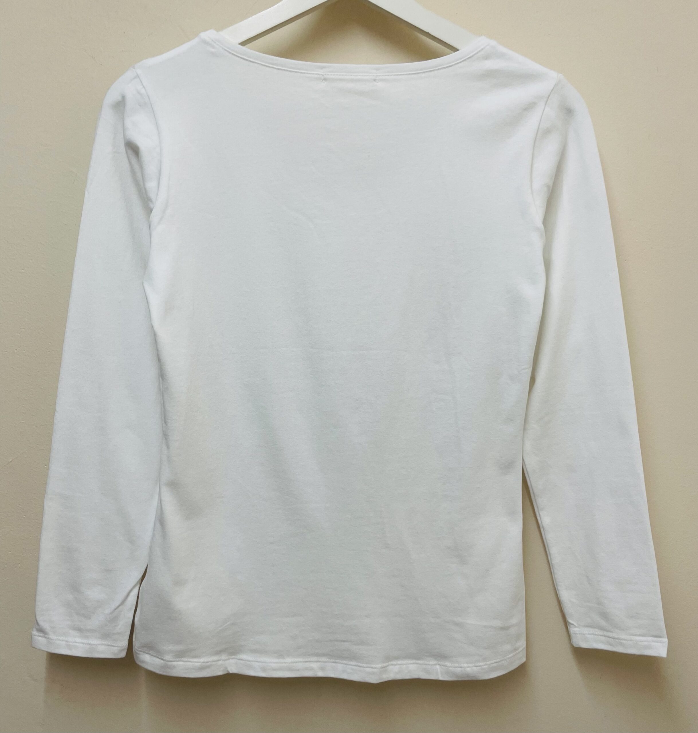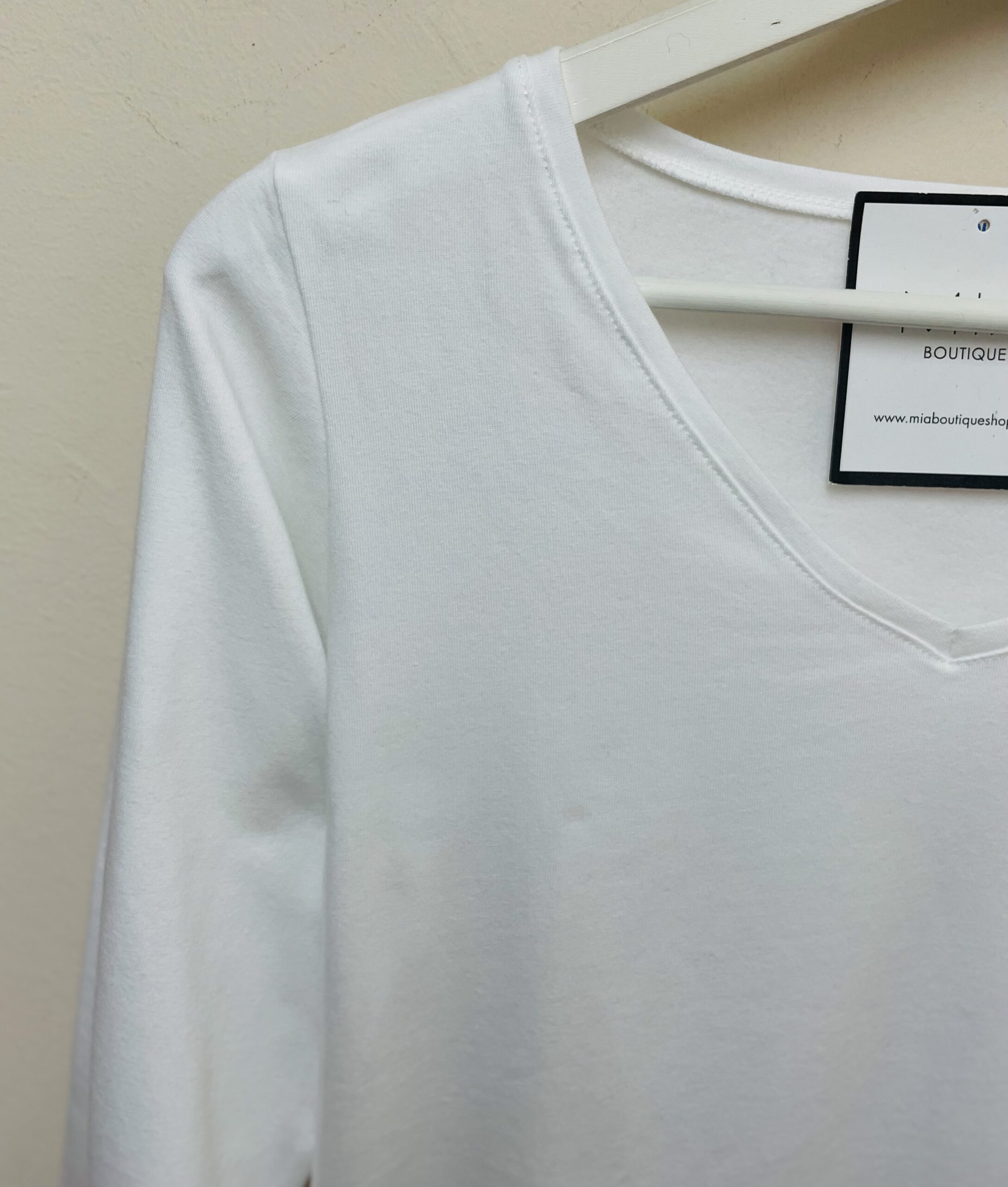 Camiseta básica cuello pico y manga larga de un tejido muy bonito, no transparenta. Felpa por dentro.