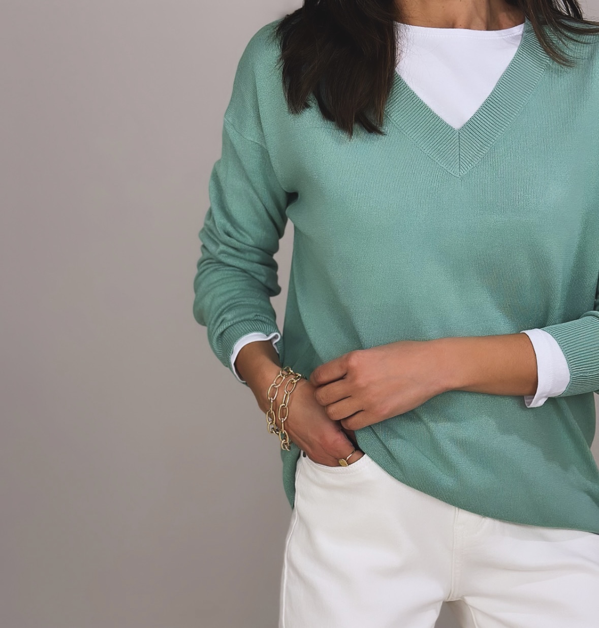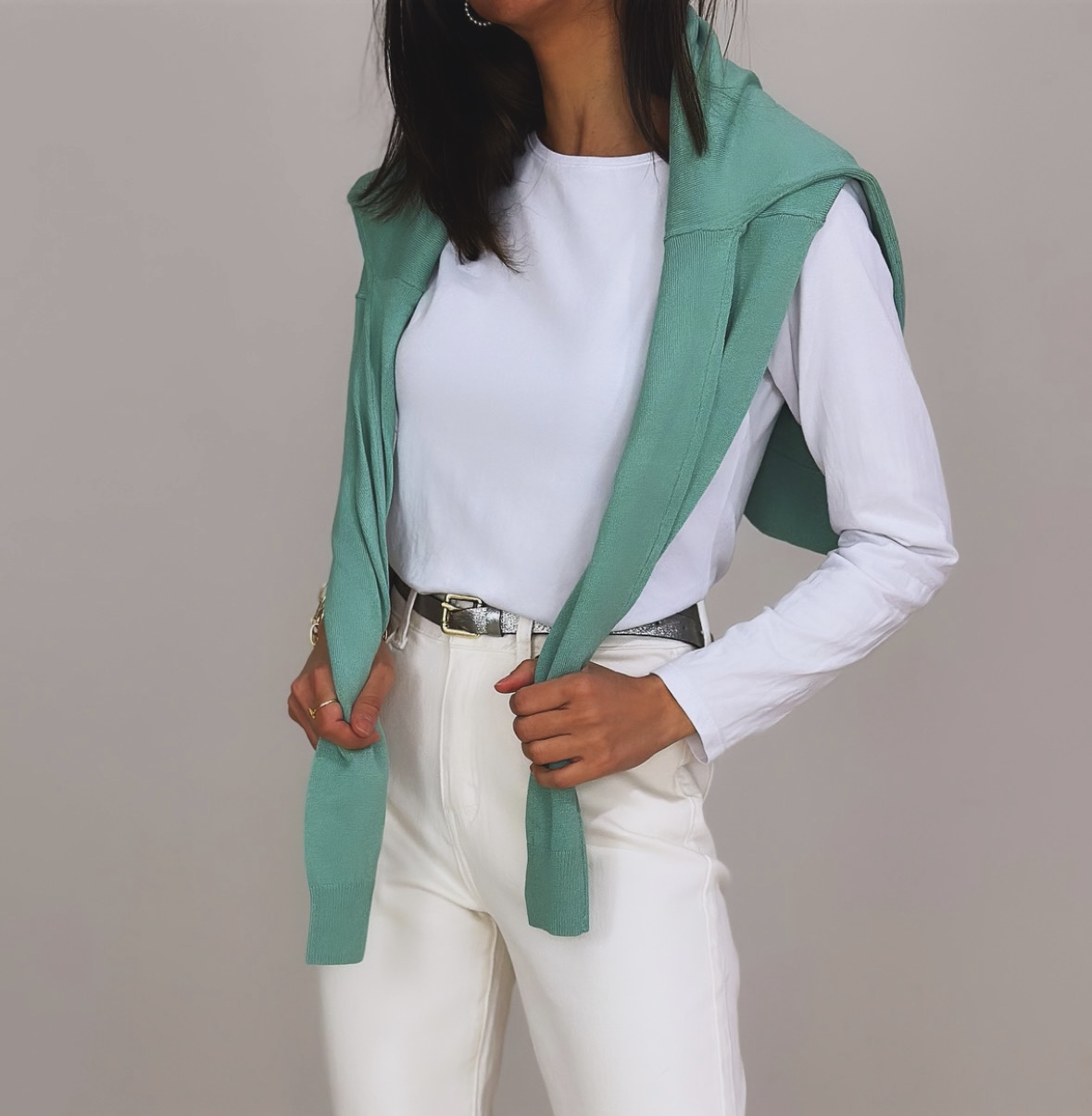 Camisetablanca de cuello redondo y manga larga, tejido de algodón suave con felpa por dentro. Una básica que necesitas renovar cada temporada.