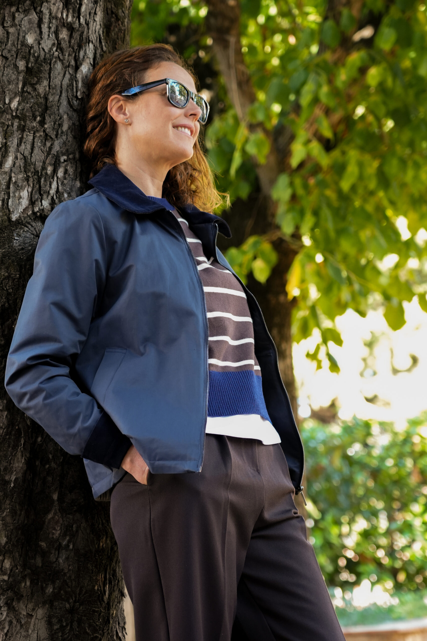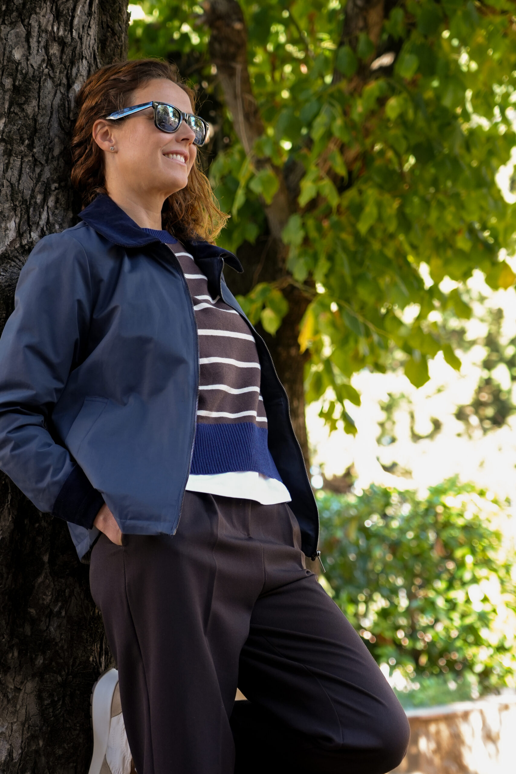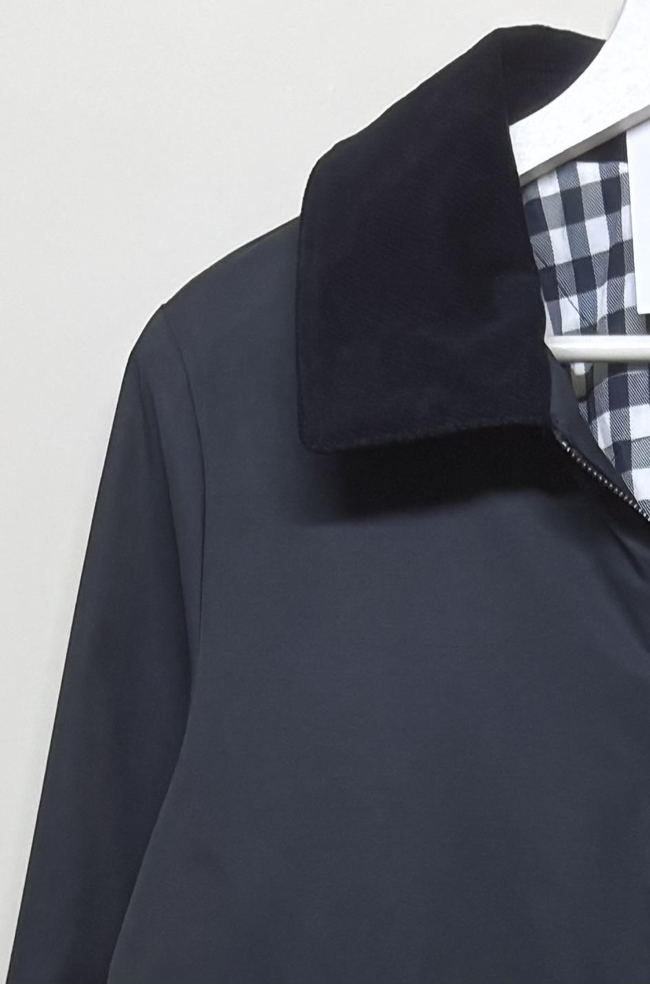 Chaqueta tipo cazadora de un acolchado medio, ligera y fácil de combinar. Detalle de pana en el mismo tono en puño y cuello, forra de cuadro vichy, cierre con cremallera y bolsillos laterales. Una prenda de fondo de armario que llevarás para todos tus looks diarios.