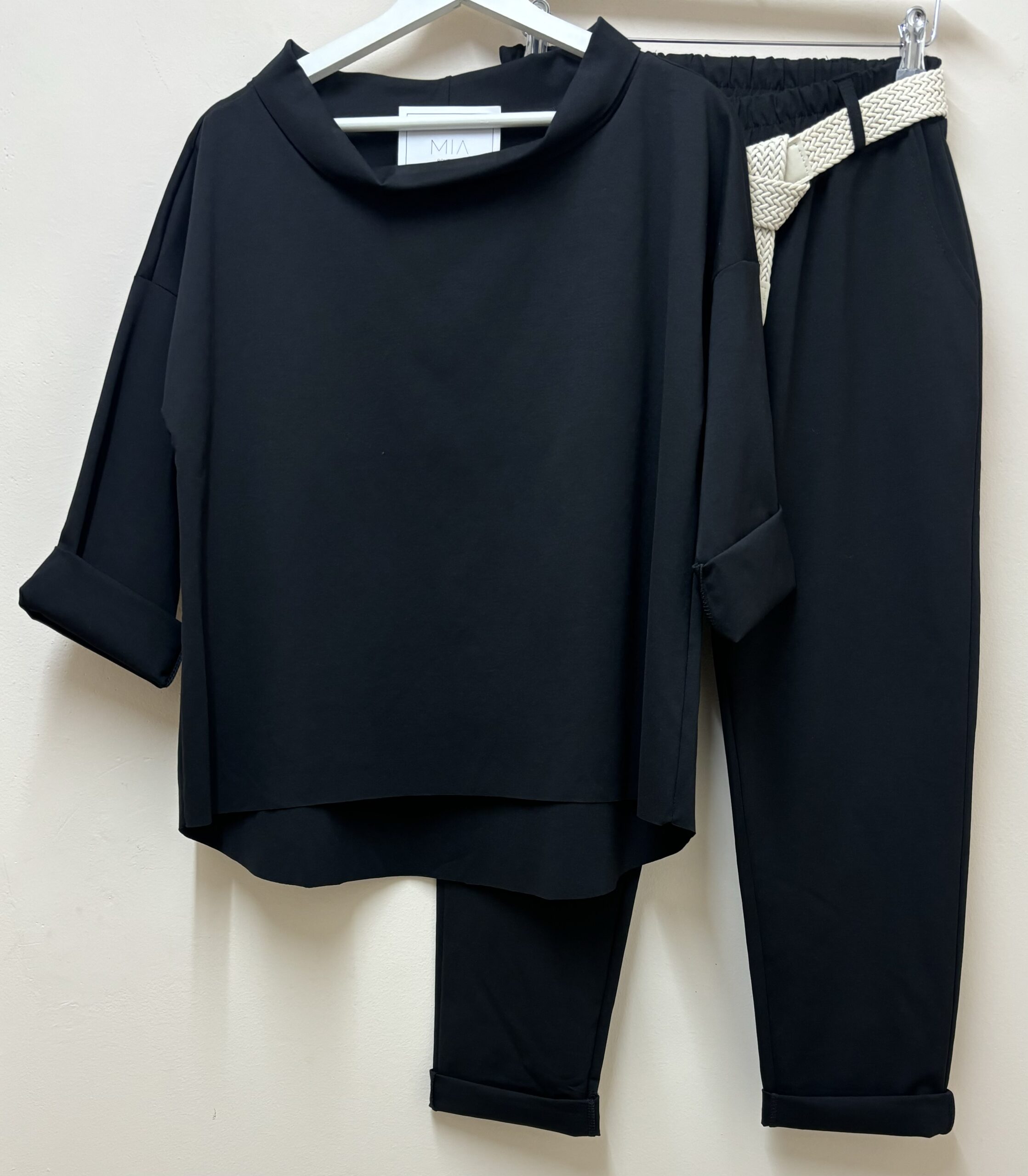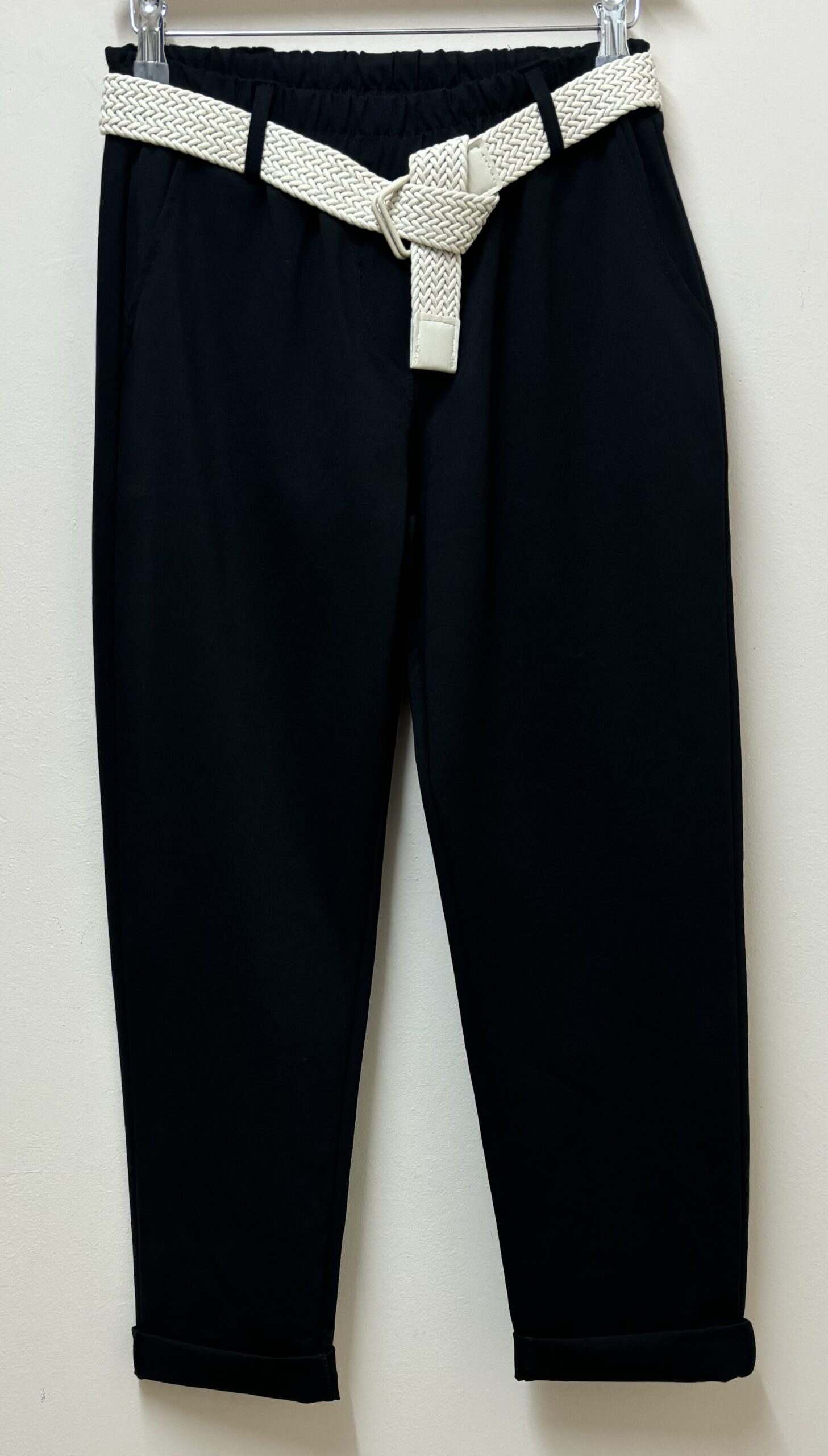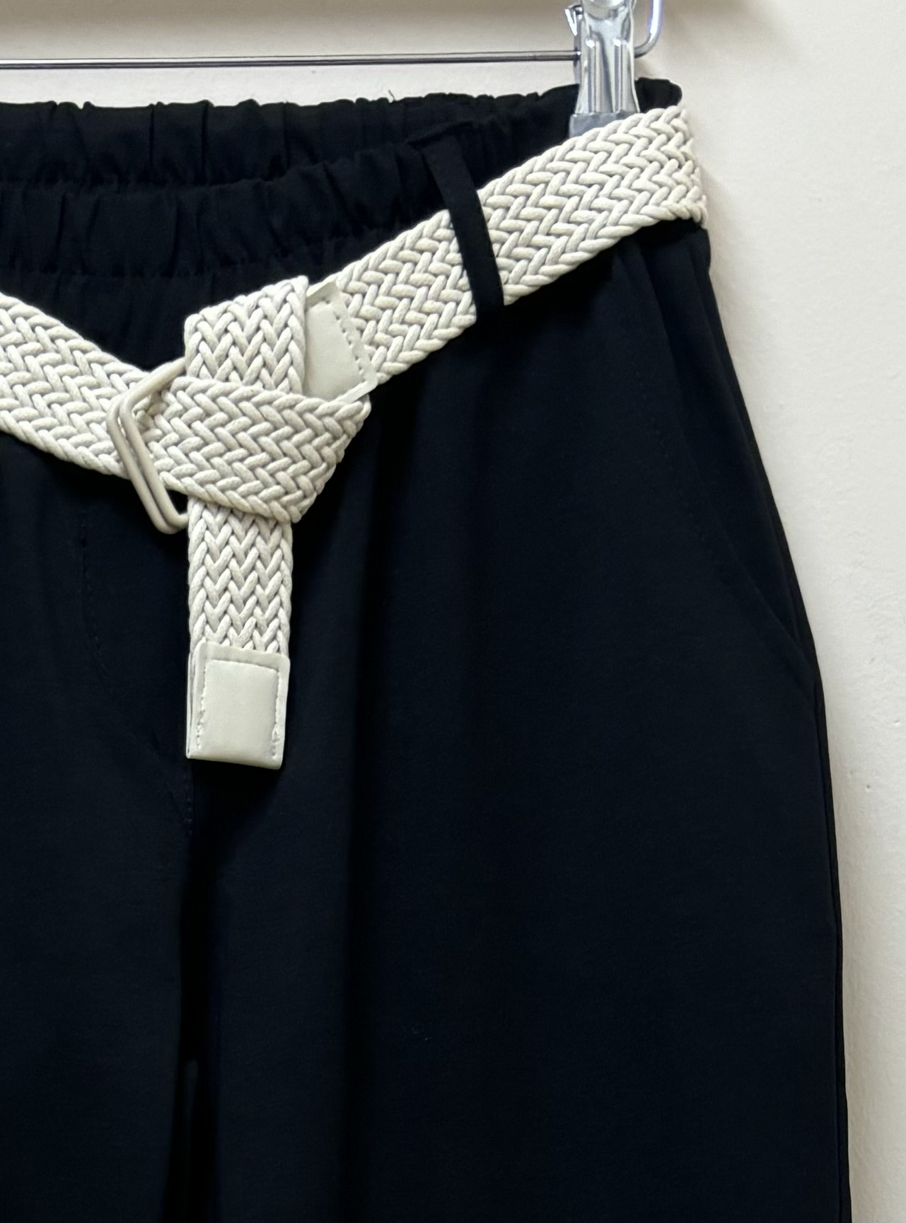 Pantalón negro de punto roma con elástico en la cintura y bolsillos laterales. Corte mom pitillo, muy elástico y cómodo. Combínalo con la Blusa Amanda para crear un total look de lo más estiloso.