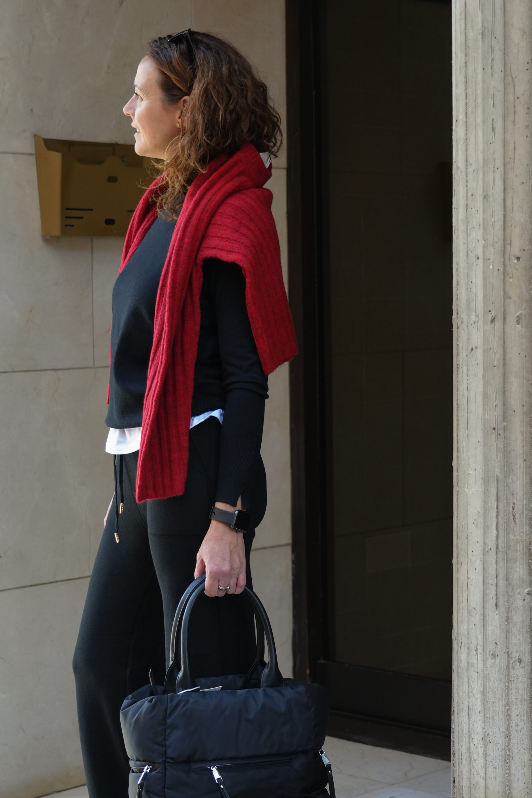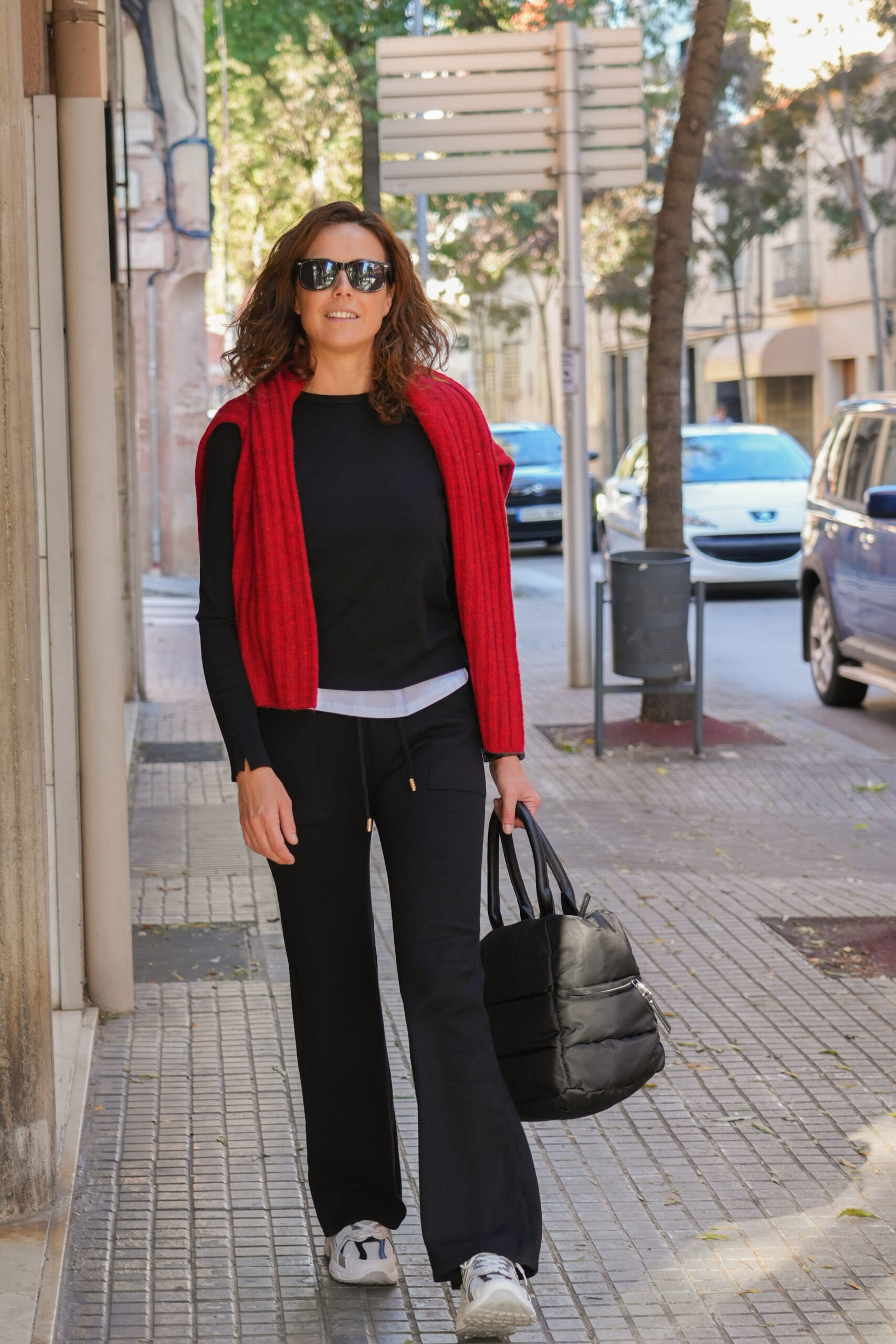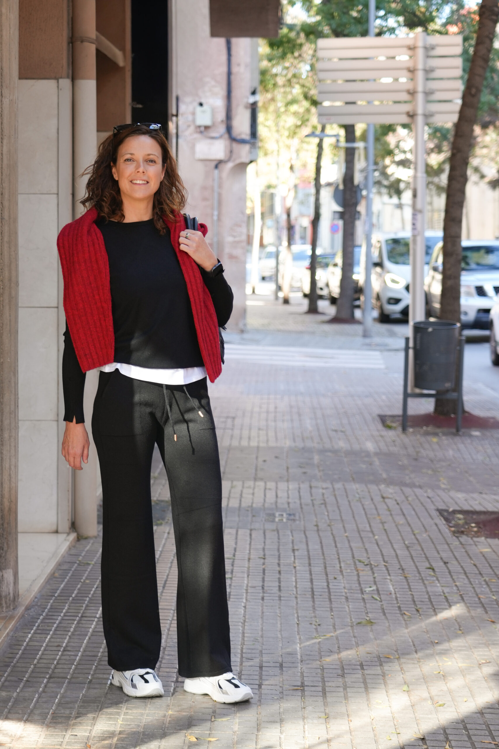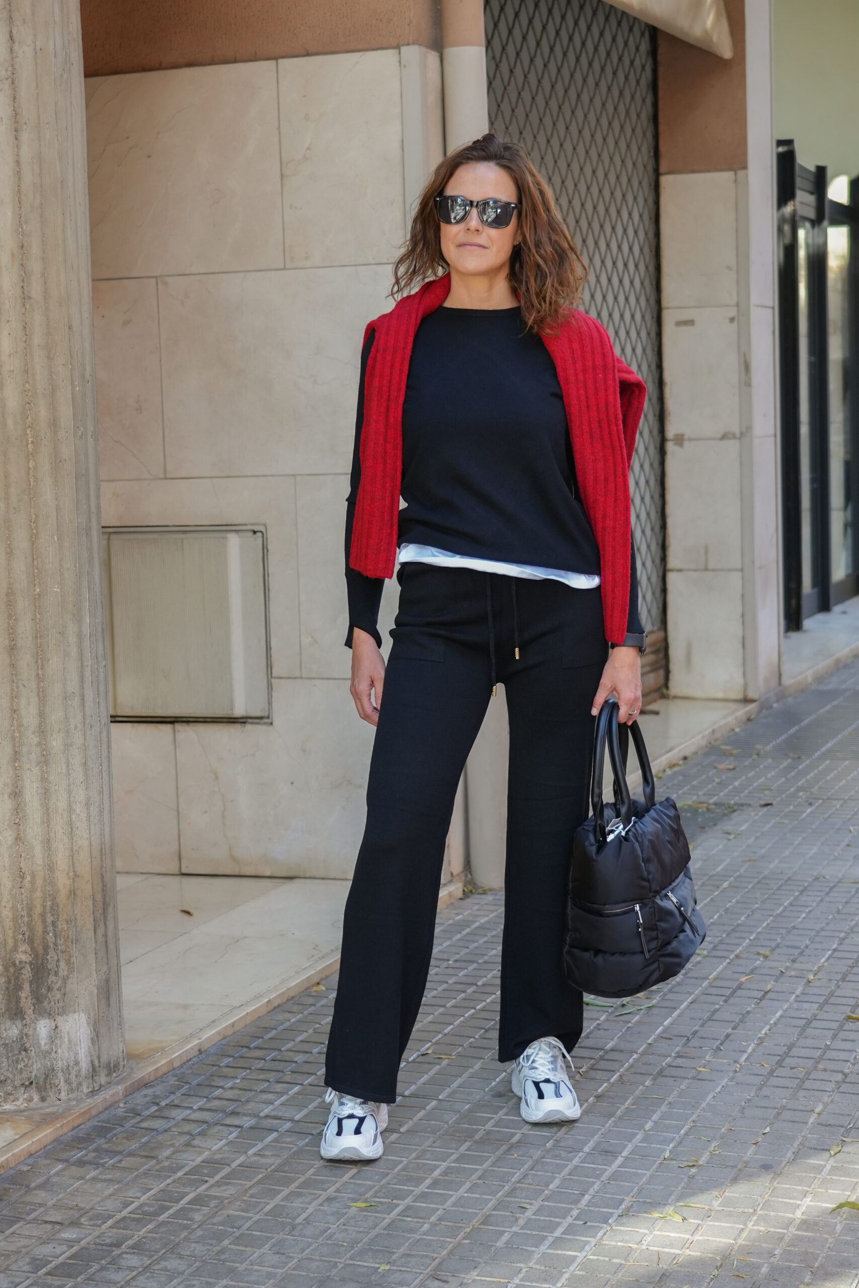 Pantalón de punto suave en color negro, elástico en la cintura con cordón ajustable y bolsillos. Corte recto. Combínalo con la Chaqueta Cremallera Leire para un total look de lo más comfy.
