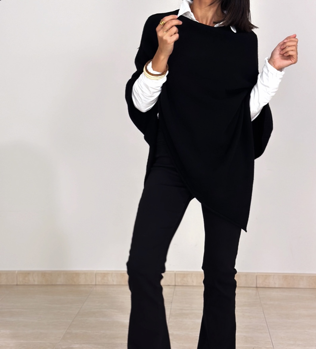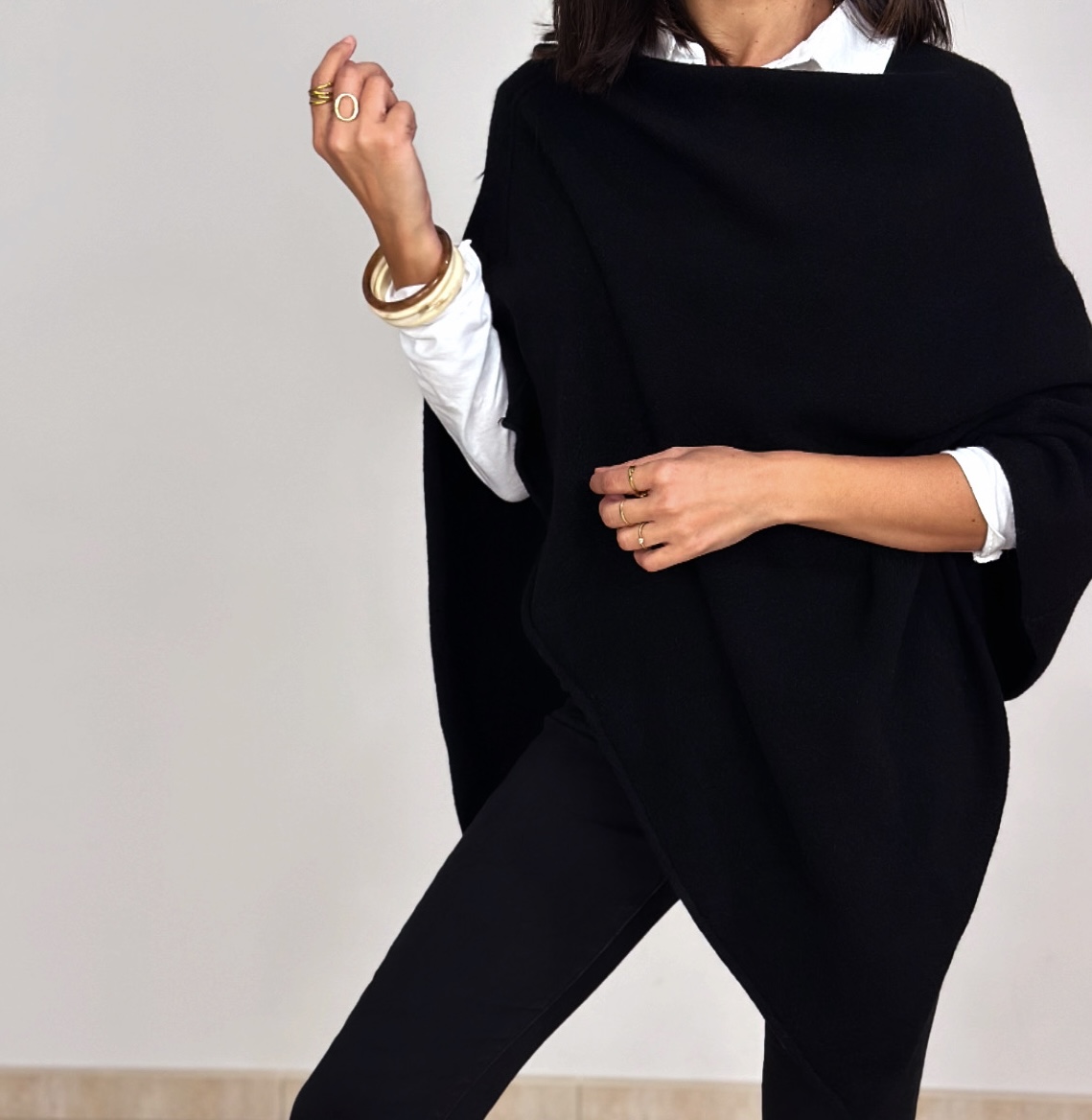 Poncho de punto suave, muy trendy esta temporada. Llévalo encima de Americanas, Jerséis Cuello Alto, Cazadoras de Piel … un comodín perfecto para no pasar frío e ir estilosa a la vez.