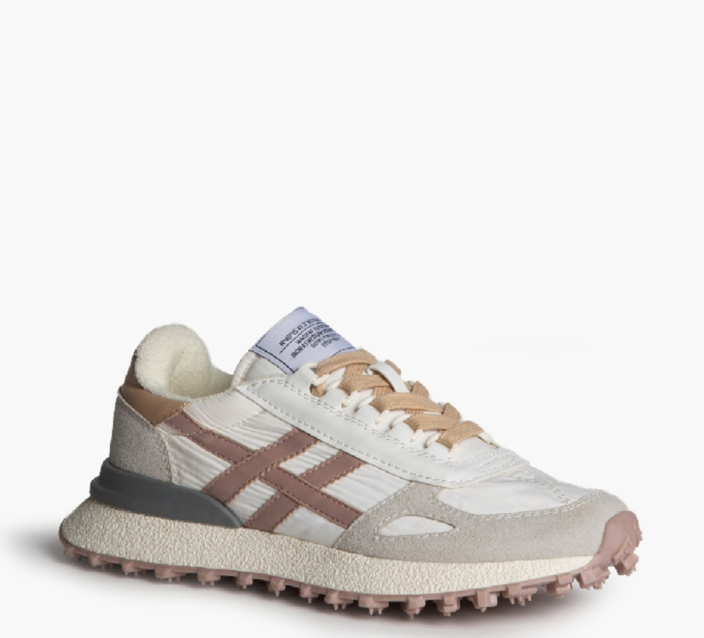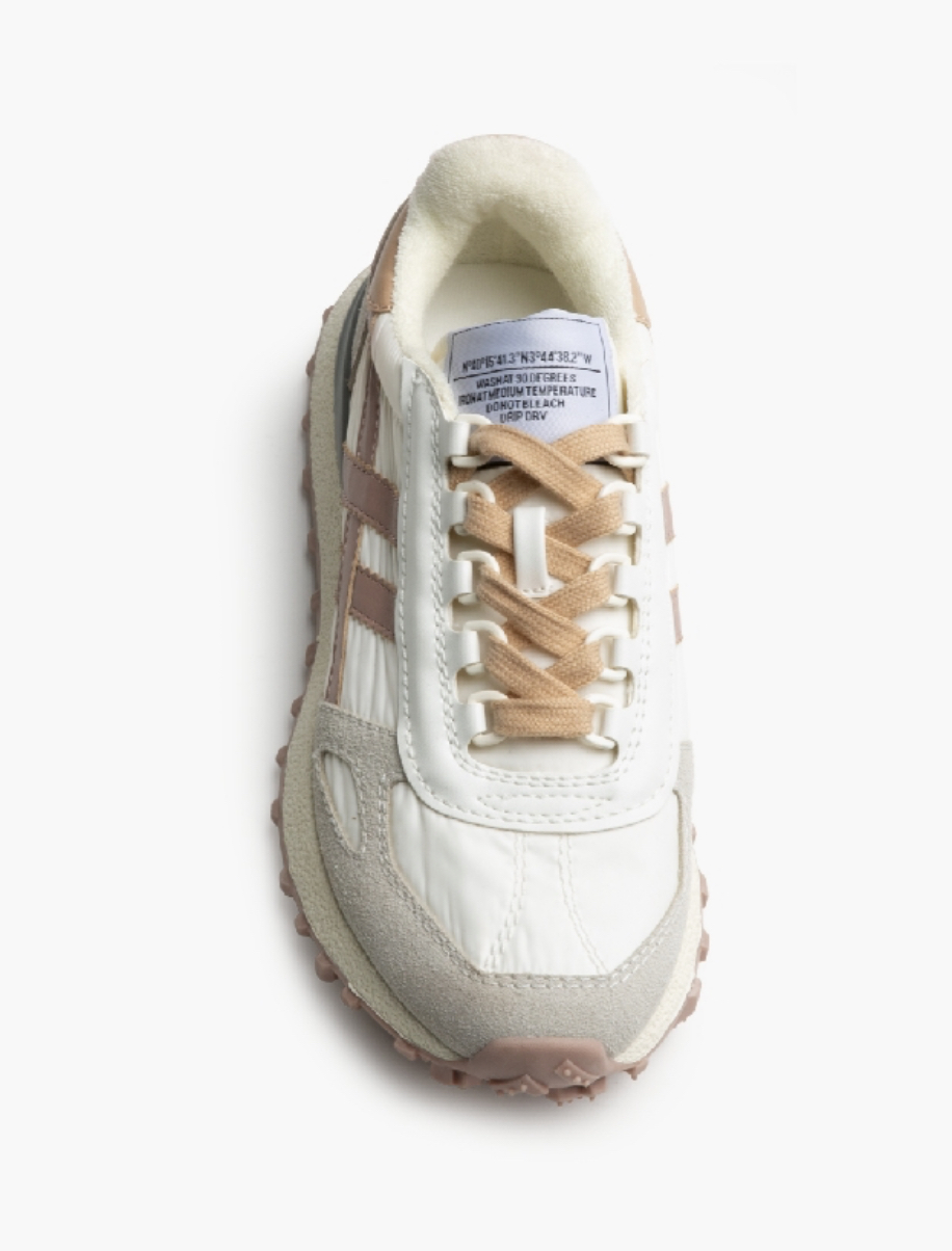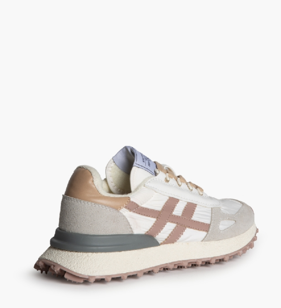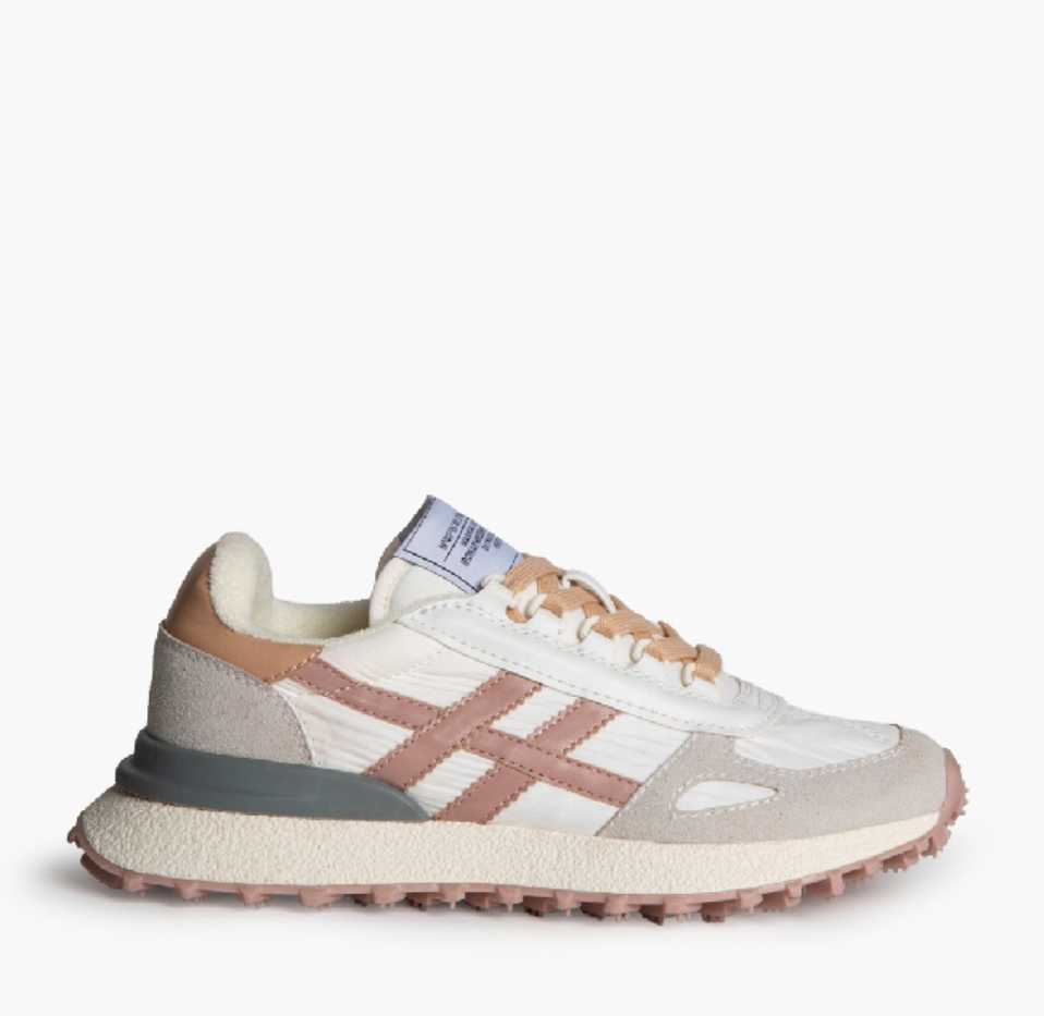 Zapatillas deportivas muy cómodas combinada en tonos pastel, muy en tendencia esta temporada. Combina ante y tela. Suela dentada.